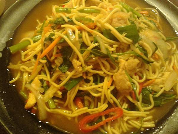 一般的炒麵味道,但比起牛肉炒麵顯得優勝許多,不知道是不是店家比較習慣用雞肉來料理的關係。雞肉有充分吸收到湯汁,細麵加雞肉咬起來頗有層次感,嘴裡可以感受到咬斷面條的彈、咬雞肉的脆、咀嚼時雞肉纖維溢出的湯汁,個人覺得不想吃飯時,這道餐點是不錯的選擇。
