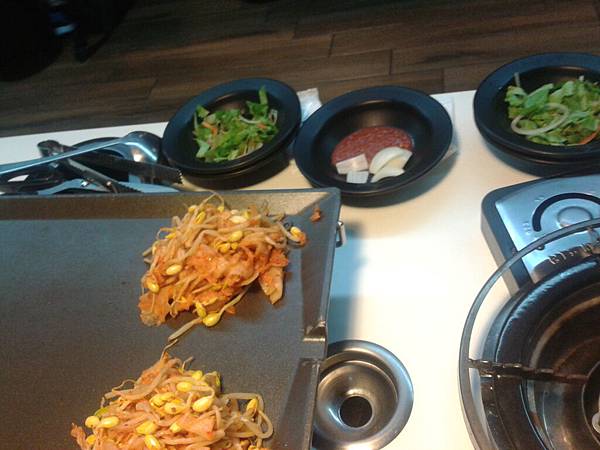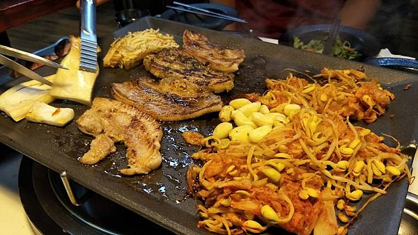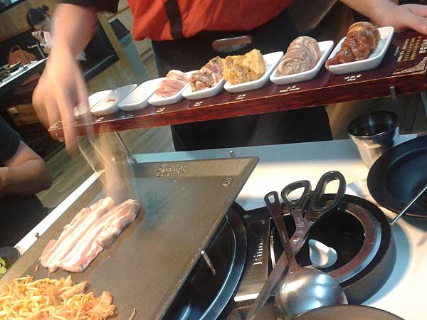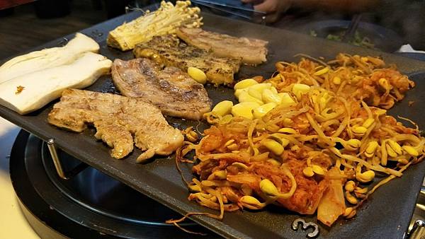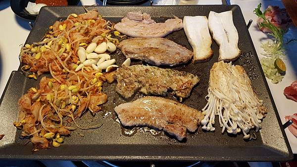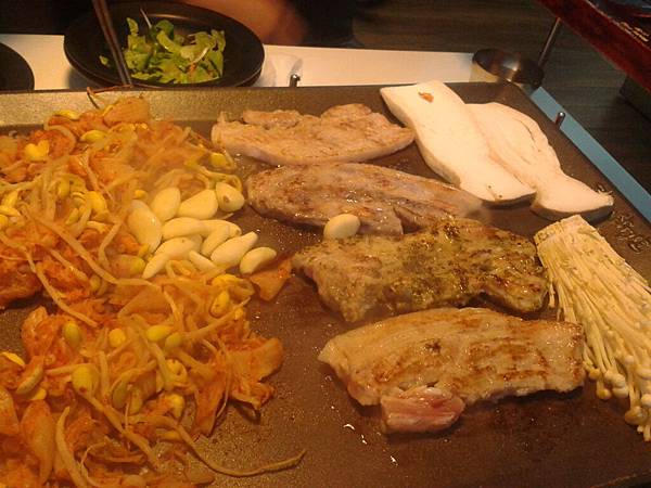 終於八色烤肉上桌啦,可是服務生沒等我們拍完照就開始烤了(冏)。