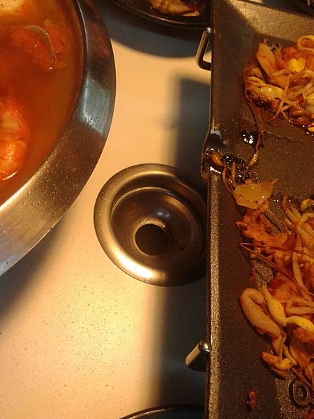 旁邊的爐子是等下點餐後用來放火鍋的。