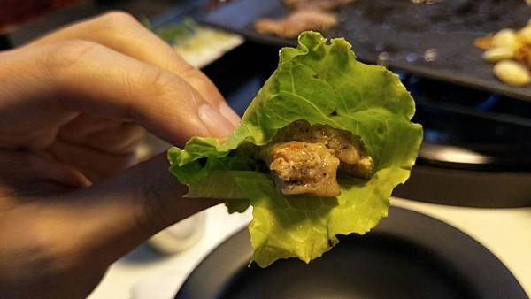 把小塊肉包入生菜裡面是韓國烤肉的吃法,這樣吃著連自己都覺得優雅起來。