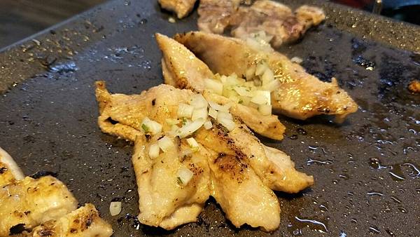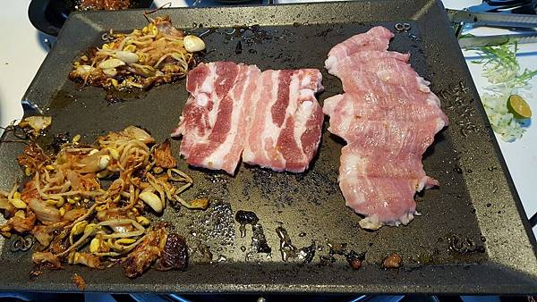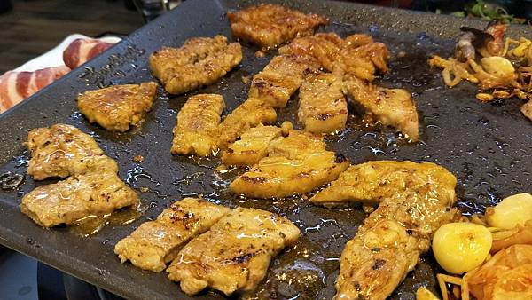 肉一上烤盤瞬間就白煙陣陣,肉香四溢啊,那蒜頭一下盤爆出的蒜香味也是讓我口水直流的主要原因之一。