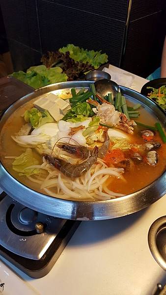本來我們點海鮮大醬湯是因為隨行有人不吃辣,結果湯煮一煮開始慢慢變紅了!!