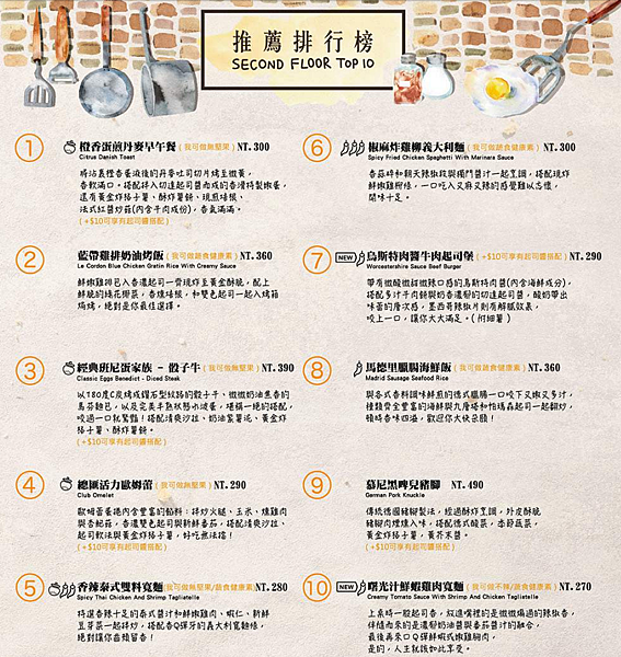 餐廳的菜單裡面真的是五花八門,我翻了老半天都不知道要怎麼點,有炸物、有肉排、甜點、套餐組合,而且菜單的品項位置相當隨興,會讓人不自覺看了很久。