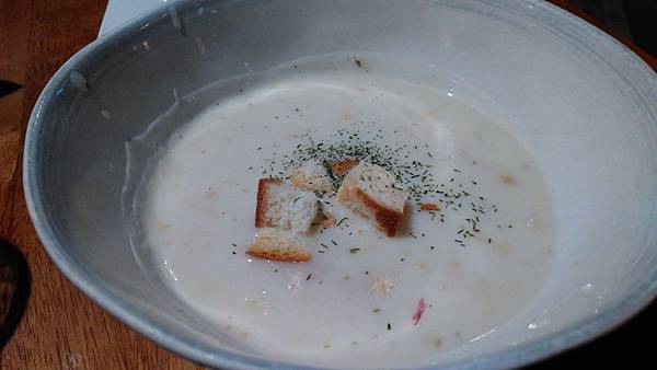 先上來的是套餐升級的濃湯,味道挺好的,舌頭能嘗到馬鈴薯的香味,上面的麵包塊吸飽湯汁後,咬起來那種多汁的口感也是很棒。