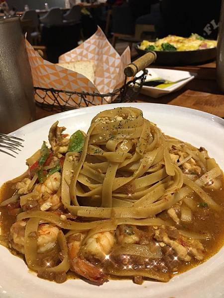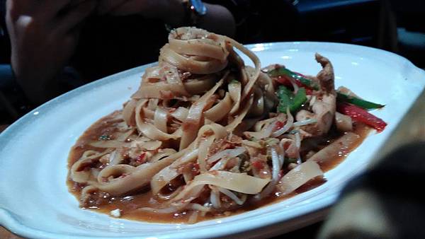 主餐-香料泰式酸辣寬麵,同行友人點的,我只有吃到冷掉後一點點,但是冷掉後還是很好吃,那股辣味有種內蘊在裡面的感覺,直到咬下去才爆發開來,熱著的時候一定更香更好吃。