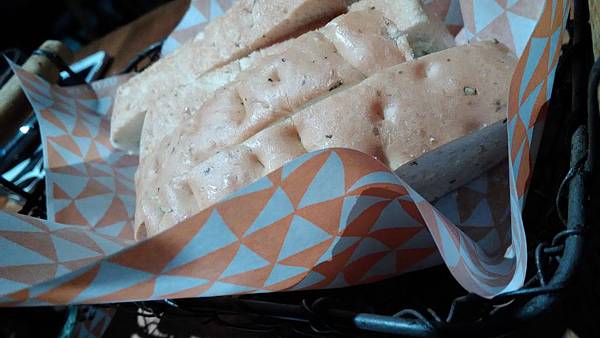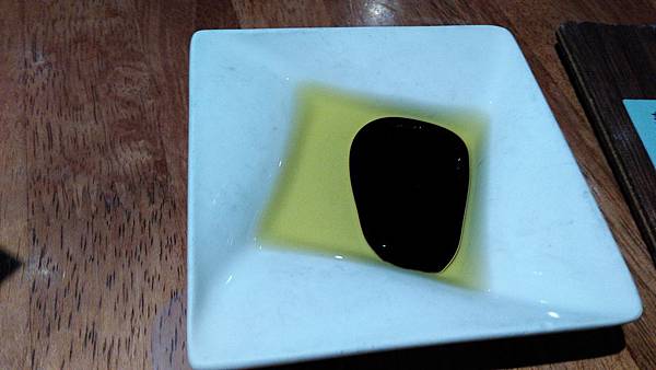 緊接而來的是無限續的麵包,剛上來熱著的時候吃著挺香有點淡淡的香草味道,旁邊那小碟子是橄欖油跟醋,沾著麵包吃有種額外的香氣,而且看著碟子這種陰陽兩色有種額外的浪漫。